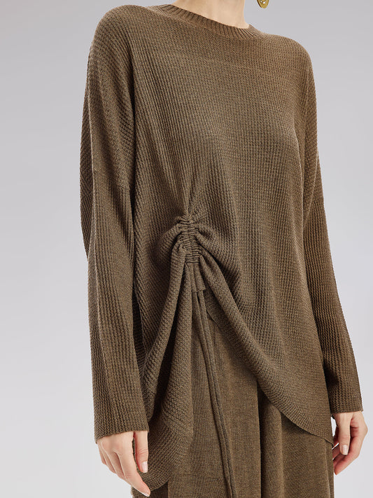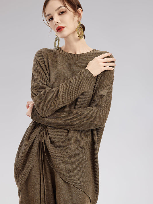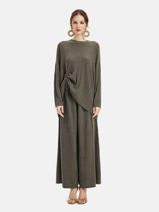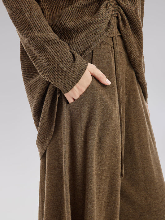 This set is made from high-quality cashmere, offering softness, warmth, and durability while being wrinkle-resistant. The oversized crew neck beautifully frames the neckline with a simple elegance. The drawstring adjustment allows for a customizable fit, making it perfect for daily outings, casual gatherings, or formal occasions, ensuring the best wearing experience.