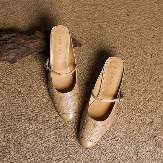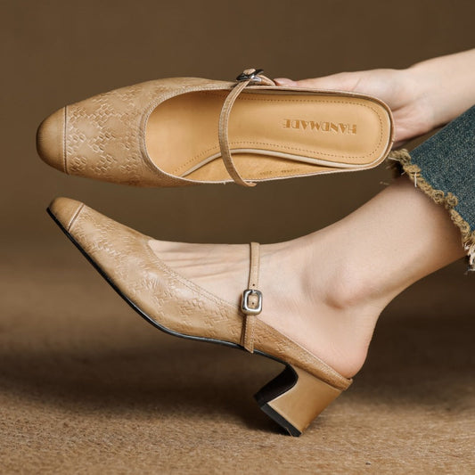 Fashioned with a buckled mary jane strap, these textured genuine leather mules blend modern aesthetics with foam-padded comfort, perfectly suited for casual and dressed-up looks.