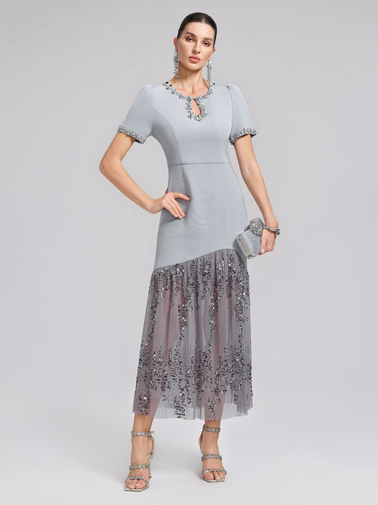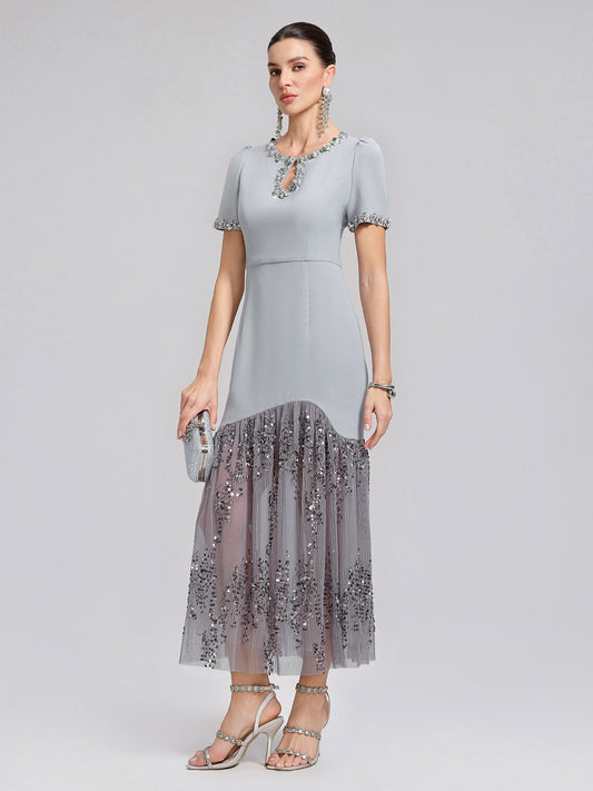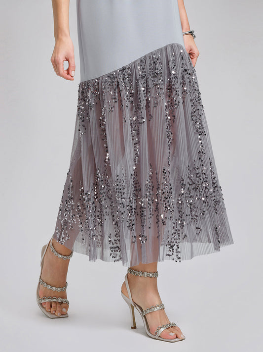 Hand-Beaded Sequin Tulle-Paneled Dress